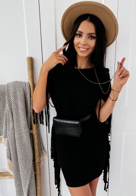 Dzianinowa sukienka z dekoltem Thalia czarna
