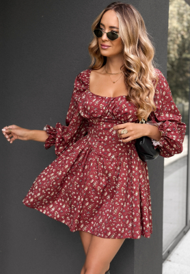 Sukienka mini w kwiaty Safari Chic burgundowa
