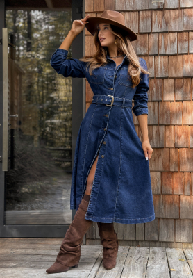 Jeansowa sukienka z paskiem Playa Del Carmen niebieska