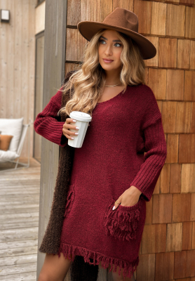 Dzianinowa sukienka z wełną i alpaką Save The Date burgundowa