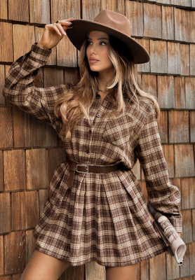 Bawełniana koszulowa sukienka w kratę Sound Of Leaves czekoladowa