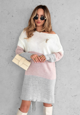 Dzianinowa sukienka sweter Morena biało-szara