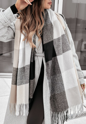 Wzorzysty szal z frędzlami Winterly beżowo-szary