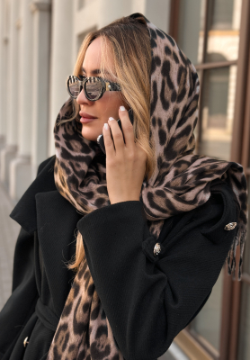 Szal z frędzlami w panterkę Still Mine beżowo-czekoladowy