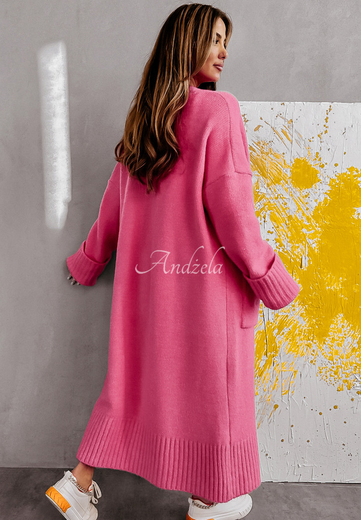 Długi kardigan oversize z kieszeniami z wełną Marbelio różowy