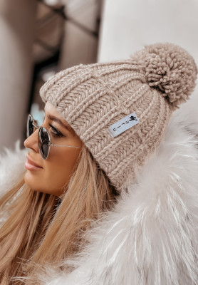 Pleciona czapka z wełną Laponia beżowa