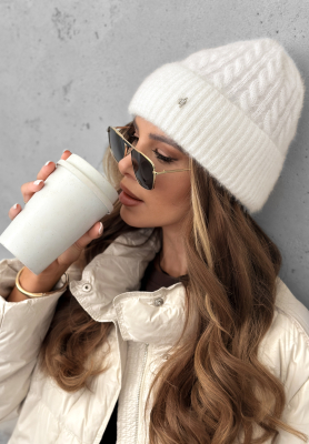 Pleciona czapka Frosted Heart biała