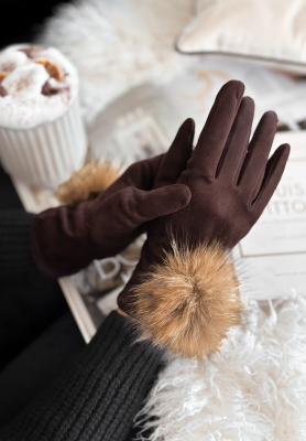 Zamszowe rękawiczki Fluffy czekoladowe