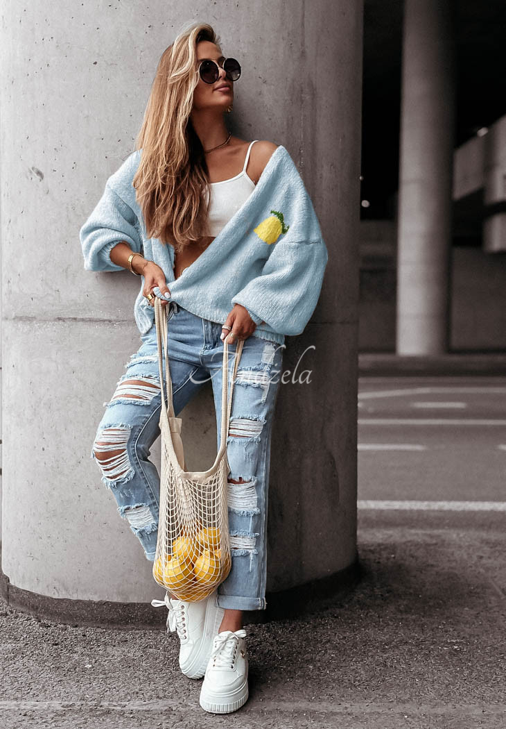 Miękki kardigan z domieszką wełny to świetny wybór na chłodniejsze dni. Wyróżnia się ozdobnymi, haftowanymi wzorami znajdującymi się zarówno z przodu, jak i z tyłu. To model o oversizowym fasonie z zapięciem na guziki. Posiada długie rękawy, które podobnie jak dół, wykończone zostały ściągaczami.