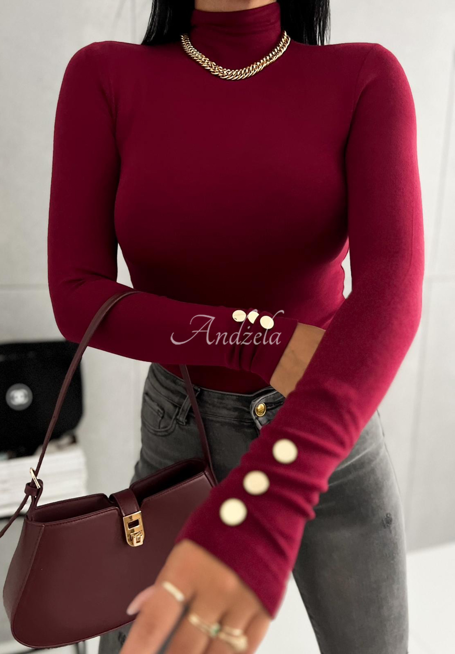 Wiskozowa bluzka z półgolfem i guzikami Amarie burgundowa