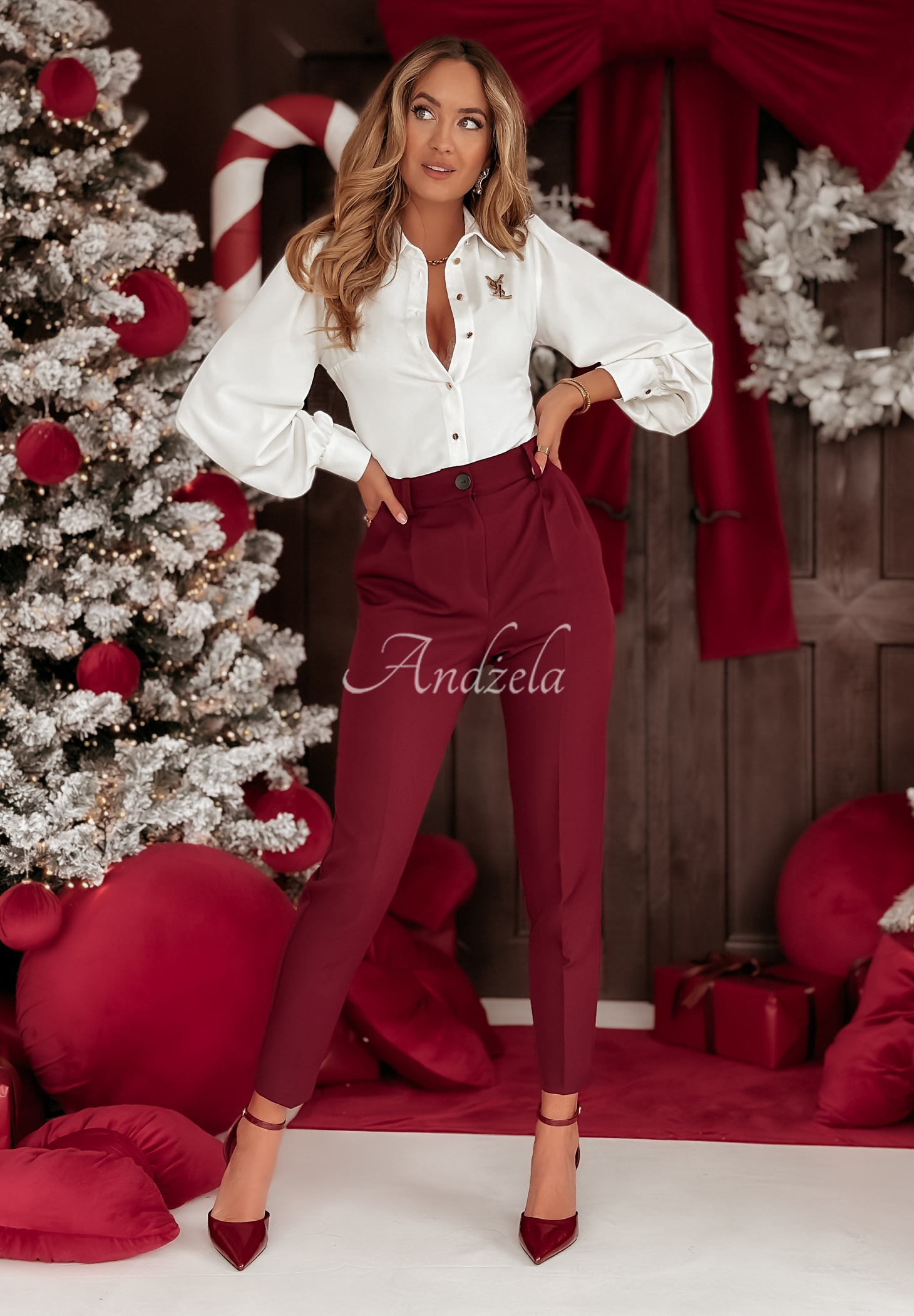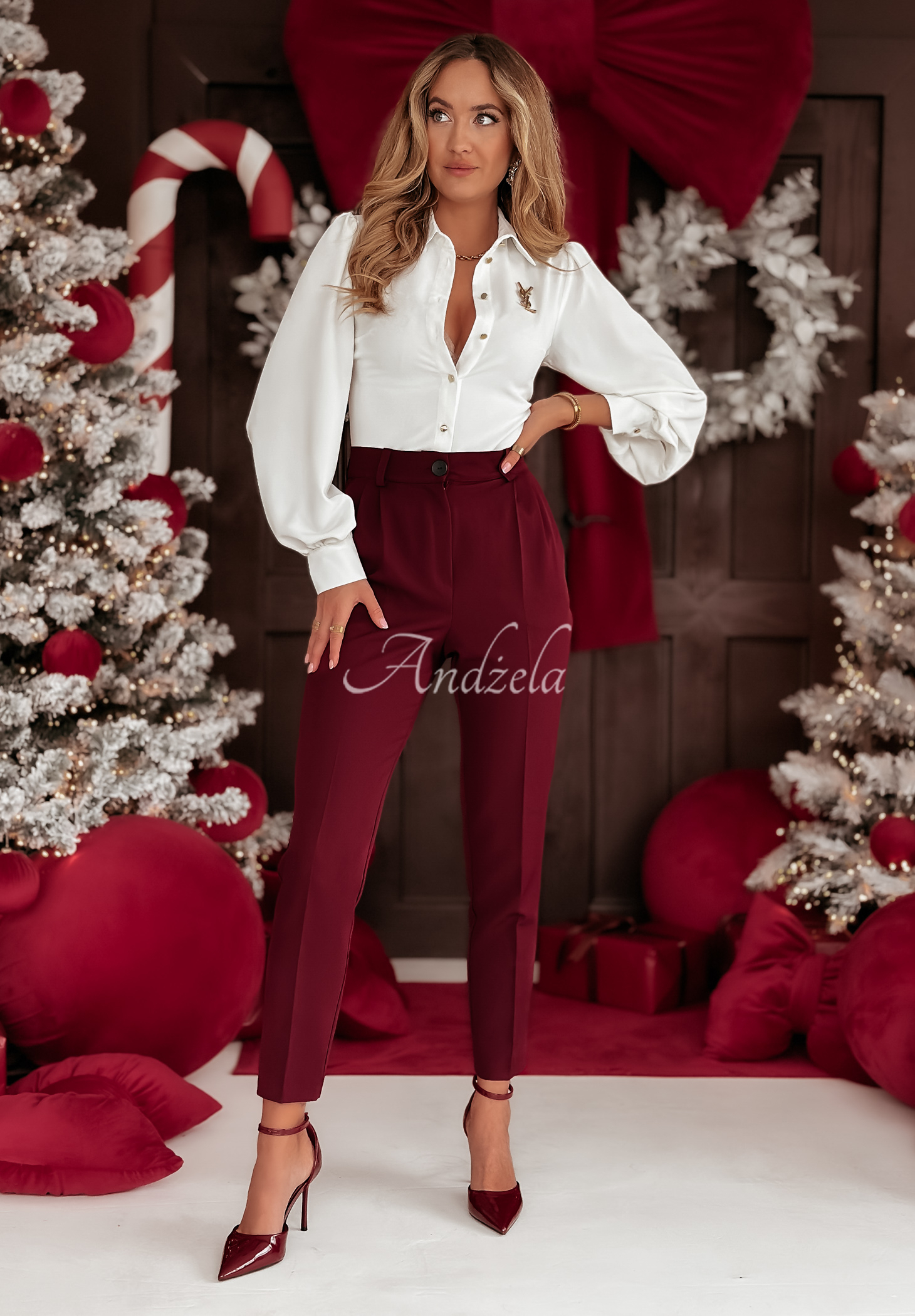 Wyjątkowa koszula z kołnierzykiem to klasyk, który powinien znaleźć miejsce w każdej kobiecej garderobie. To model z efektownym wiązaniem przy szyi, które jest zdejmowane. Zapinany jest na złote guziki, a rękawy zakończone są mankietami. To świetny wybór do looków w eleganckiej odsłonie!