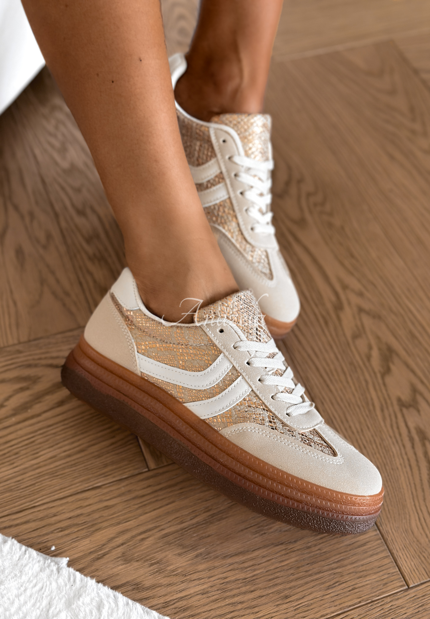 Wygodne adidasy powinny znaleźć miejsce w każdej kobiecej garderobie. Wyróżniają się zwierzęcym printem, wykonane zostały z zamszowego materiału ze skórzanymi wstawkami. To sznurowany model z cholewką przed kostkę oraz zaokrąglonym noskiem. Osadzony został na podwyższonej, gumowej podeszwie. Całość zdecydowanie zapewni komfort podczas użytkowania, jednocześnie prezentując się bardzo modnie.