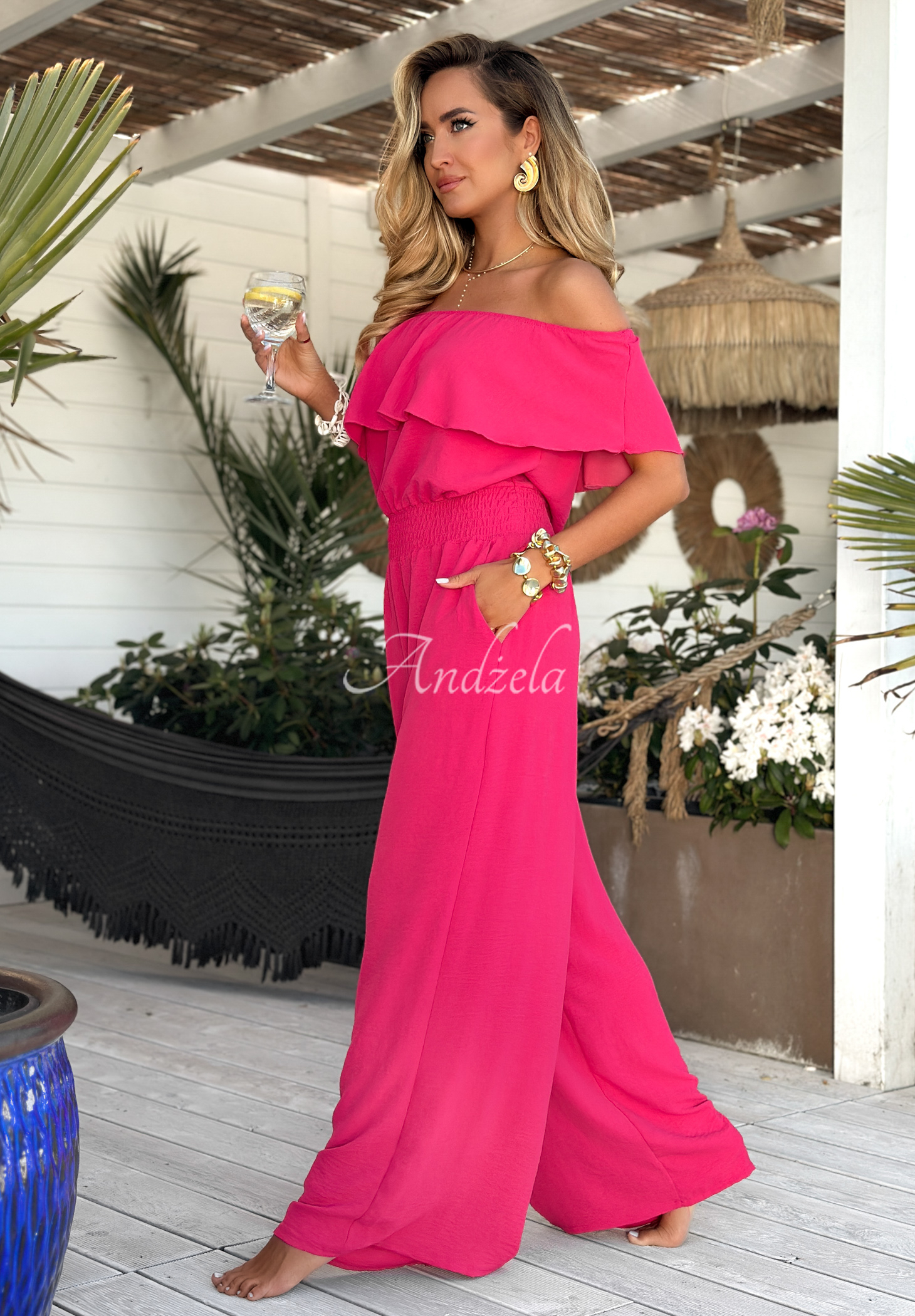 Długi kombinezon hiszpanka Secret Lagoons fuksjowy