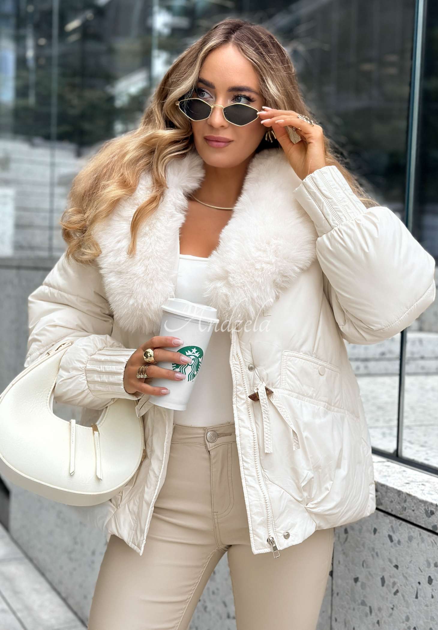 Kurtka o krótszym fasonie to świetne dopełnienie stylizacji na ten sezon! To model zapinany na suwak i napy, z przodu posiada funkcjonalne kieszenie. Propozycja z kołnierzykiem, który został dopełniony syntetycznym, odpinanym futerkiem. Produkt posiada podszewkę oraz rękawy zakończone ściągaczami.