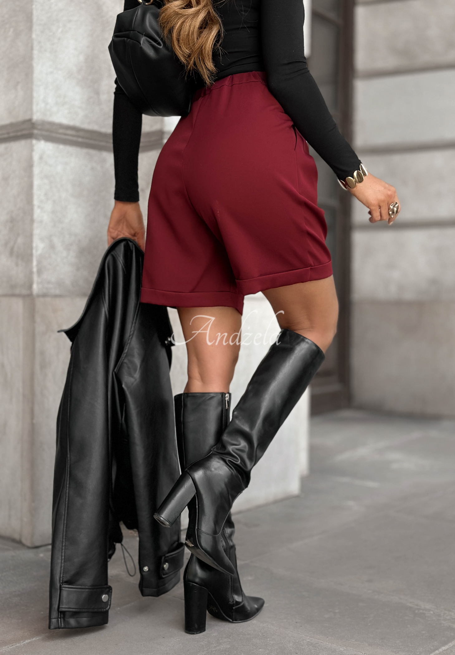 Krótkie spodenki o nieco dłuższym fasonie to świetny wybór do uzupełnienia wielu stylizacji. Model z funkcjonalnymi kieszeniami, posiada elastyczną gumkę z tyłu pasa. Propozycja zapinana na suwak i złoty guzik.