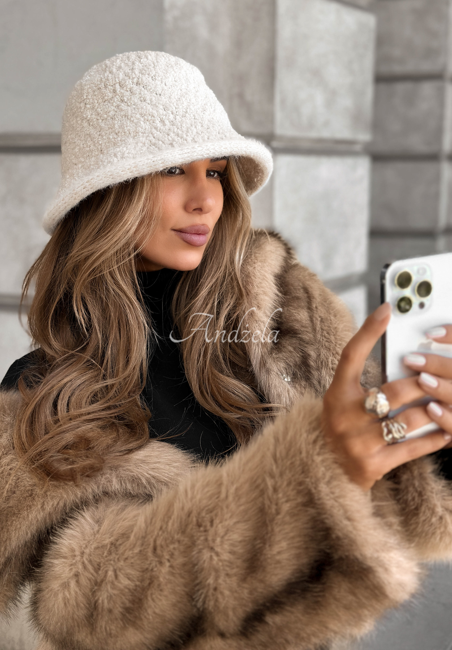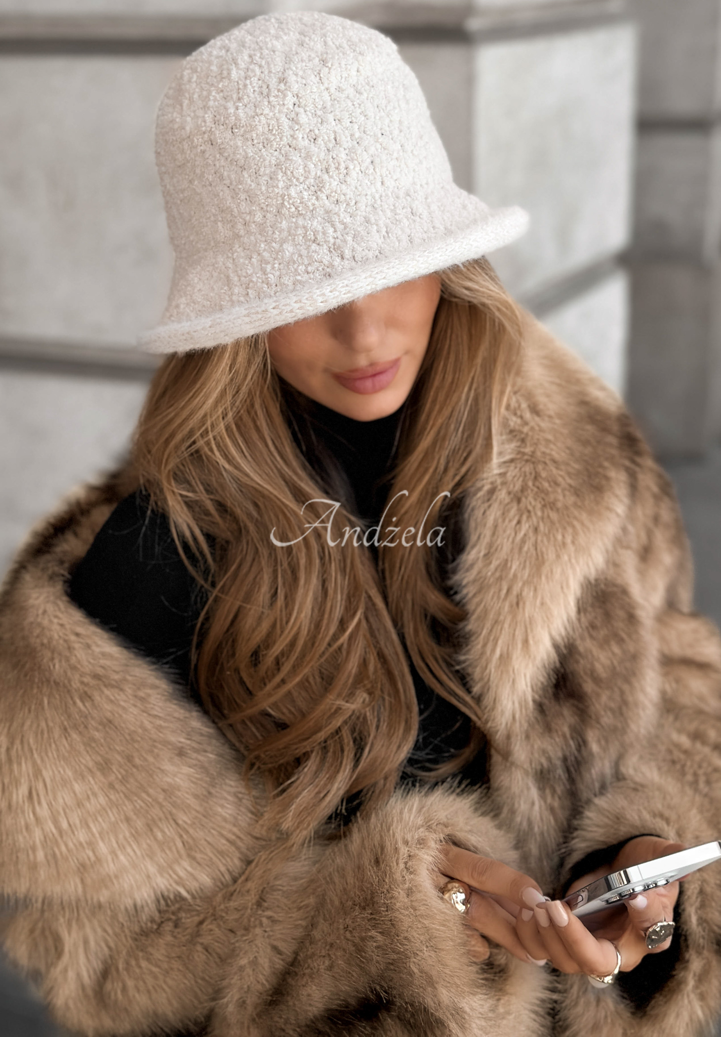 Bucket hat z kożuszkiem wykonany z przyjemnego w dotyku materiału. To propozycja, która posiada regulację. Doskonale sprawdzi się na sezon jesienno-zimowy. * kożuszek* regulacja * brak podszewki