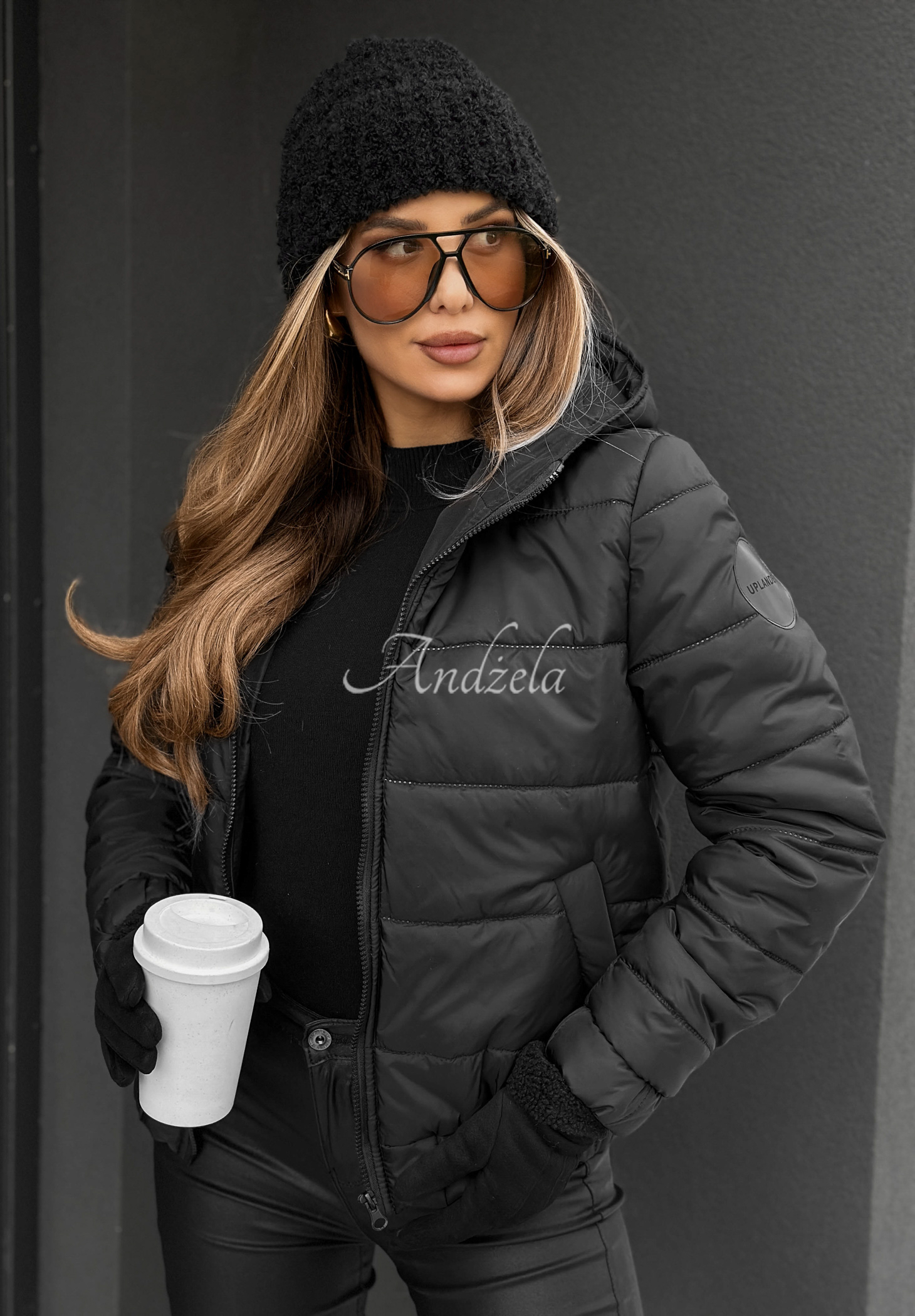 Krótka kurtka o kroju bomberki, lekko ocieplana puchem syntetycznym. To model z pikowaniem i kapturem, zapinany jest na suwak. Z przodu znajdują się funkcjonalne kieszenie, zarówno rękawy, jak i dół, wykończone są elastycznymi ściągaczami.