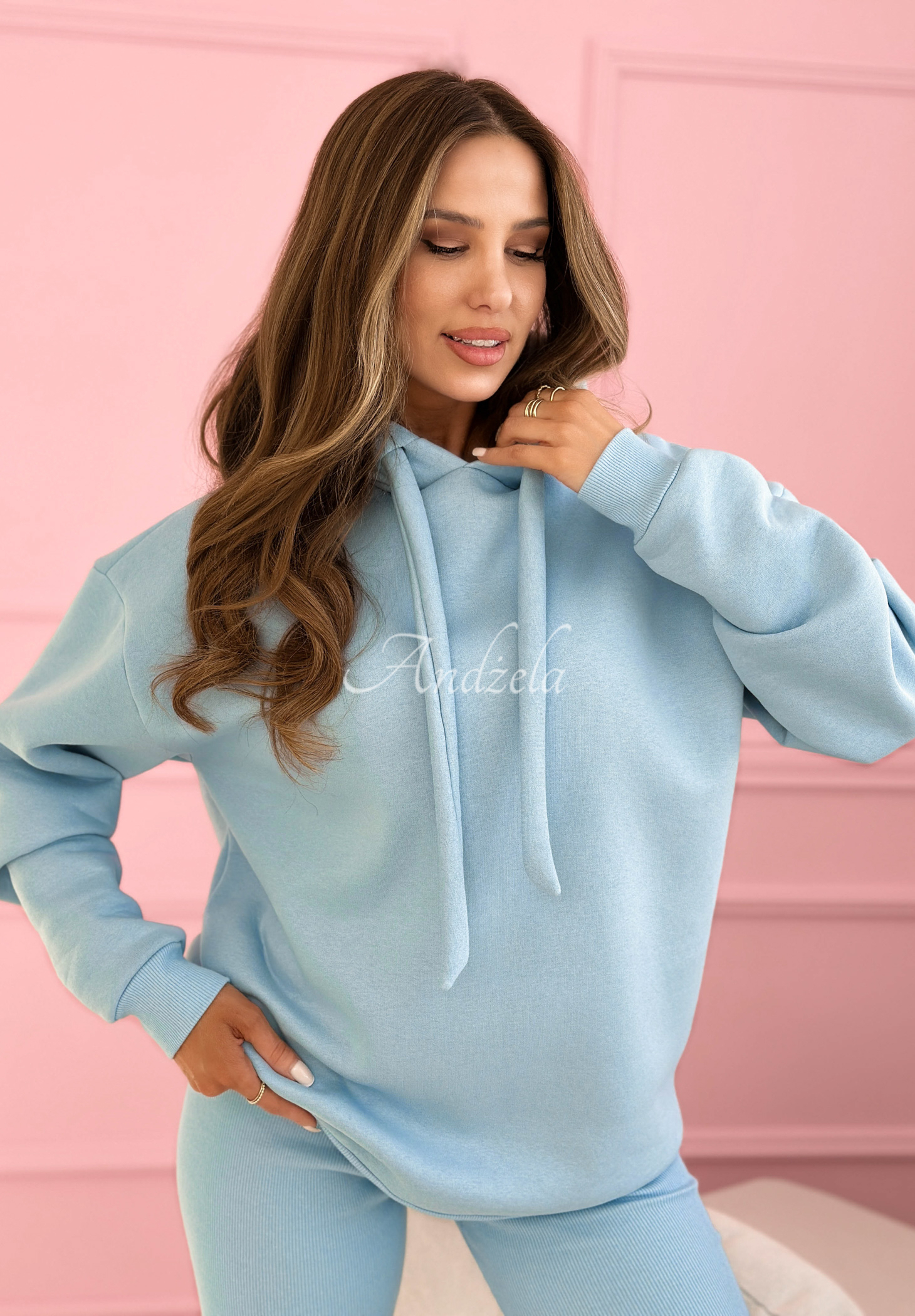 Bawełniany komplet dresowy bluza z kapturem i legginsy Hot Duo błękitny