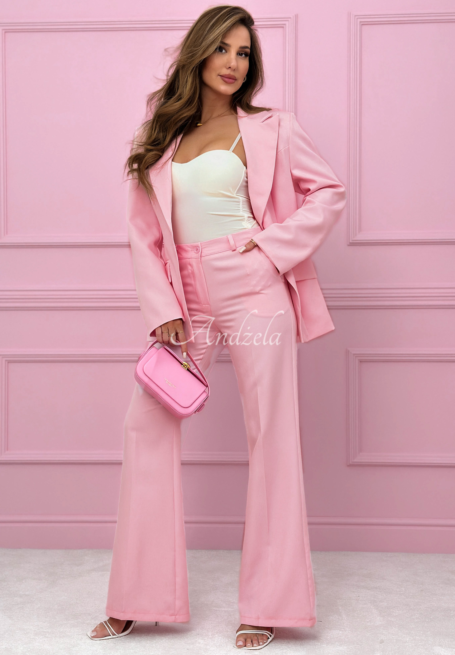 Taliowany garnitur damski z rozszerzanymi nogawkami Coctail Party różowy