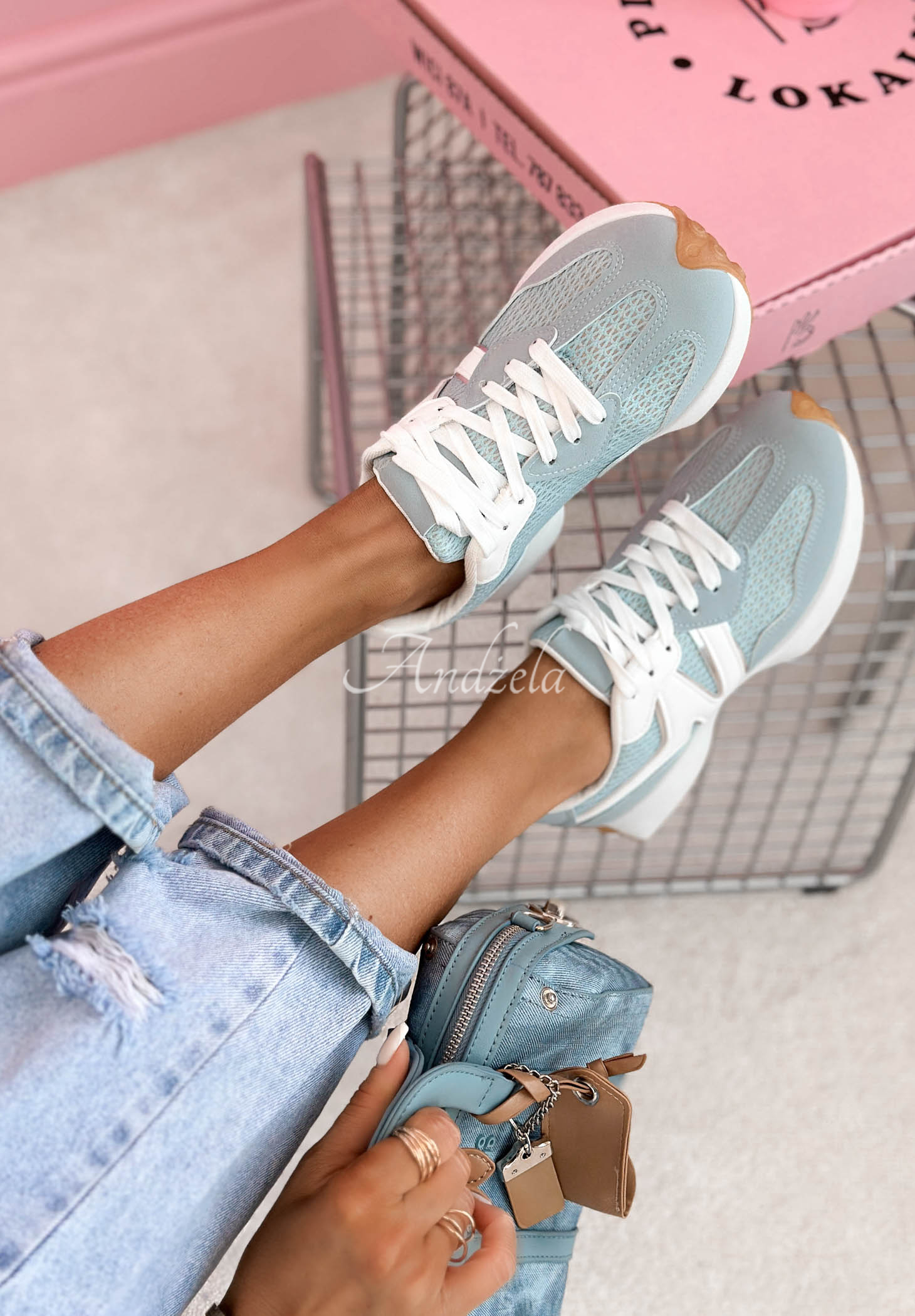 Sneakersy to propozycja wykonana z siateczkowego materiału. Wyróżniają się skórzanymi wstawkami, posiadają sznurowanie z przodu. To model osadzony na lekko podwyższonej podeszwie z zaokrąglonym noskiem.