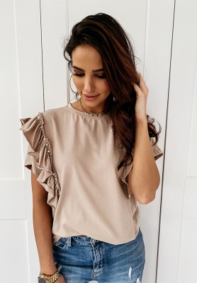 Wiskozowa bluzka na jedno ramię z długim rękawem Heather mokka