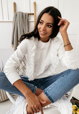 Bawełniana bluzka z różą i falbanką You Know Why biała