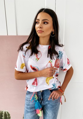 Asymetryczna bawełniana bluzka z falbankami Ruffle Lady ecru