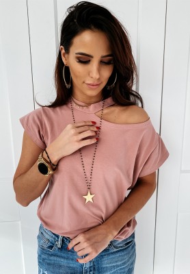 Krótka wiskozowa bluzka z napisem Icon różowa