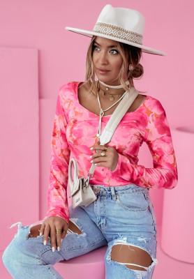 Kwiecista bluzka z dekoltem Camellia różowa