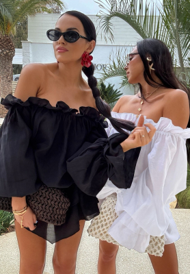 Jedwabna bluzka hiszpanka z falbankami Arlena czarna