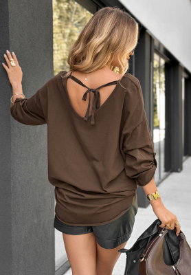Asymetryczna bluzka z dekoltem w serek Back Soon czekoladowa