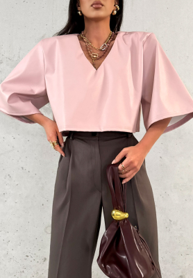 Skórzana krótka bluzka La Milla Don't Call Me pudrowy róż