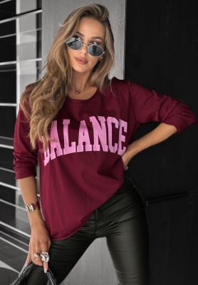 Asymetryczna bluzka z nadrukiem Balance It burgundowa