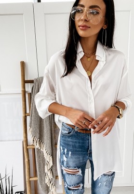 Bawełniana koszula oversize z misiem Classy Bear biała