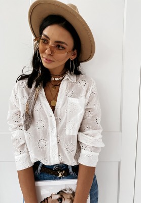 Koszula z ozdobnymi broszkami Brunch Outfit biała