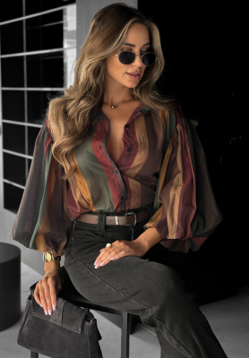 Koszula z bufkami Watch This czekoladowo-burgundowa