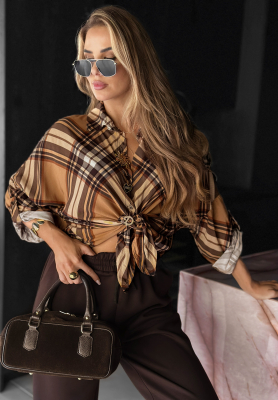Koszula w kratę Undefined Status camelowo-czekoladowa