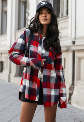 Asymetryczna koszula oversize w kratę z bawełny Alexandra różowa