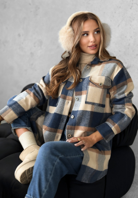 Koszula w kratę Tea With Cinnamon beżowo-granatowa
