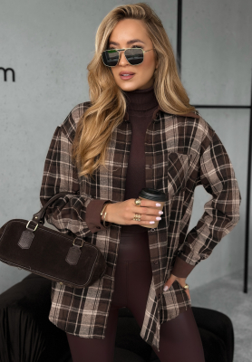 Bawełniana koszula w kratę Enjoying That czekoladowa