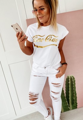 Bawełniany t-shirt z nadrukiem Golden Lady biały