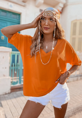 Bawełniany T-shirt oversize z dekoltem w serek Cascade pomarańczowy