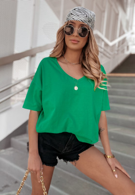 Bawełniany T-shirt oversize z dekoltem w serek Cascade zielony