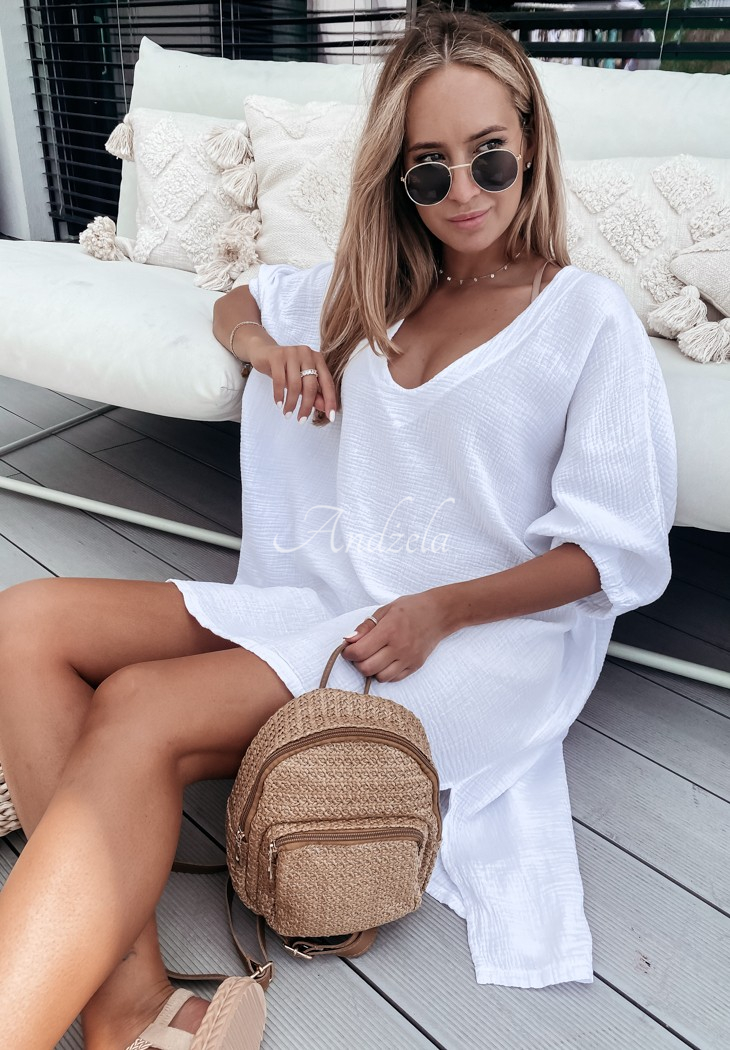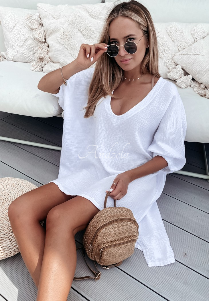 Absolutnie piękna, cudowna tunika-sukienka. pięknie się w niej wygląda, jest przewiewna, dziś 30' a w niej było przyjemnie i przewiewnie. nadaje się zarówno jako sukienka, jak i bluzka do szortów, spodni, legginsów itp. materiał miękki i przyjemny, nie jest super cienki, ale i tak dobry na upał. polecam!