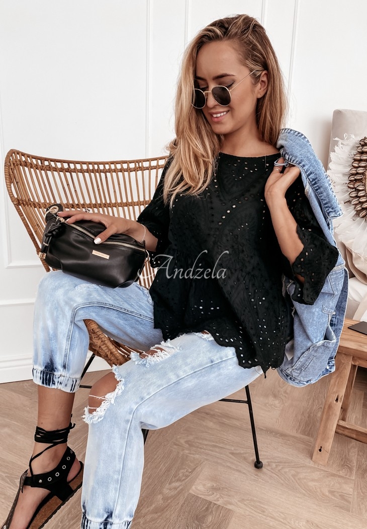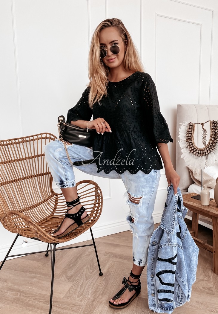 Bluzka w stylu boho z dziewczęcym, ażurowym wykończeniem. Fason posiada falbanki u dołu i przy rękawach. Świetnie sprawdzi się w codziennych stylizacjach, które bez wątpienia zaprezentują się fantastycznie. Model wykonany został z wysokiej jakości materiału, dostępny jest w dwóch wersjach kolorystycznych.