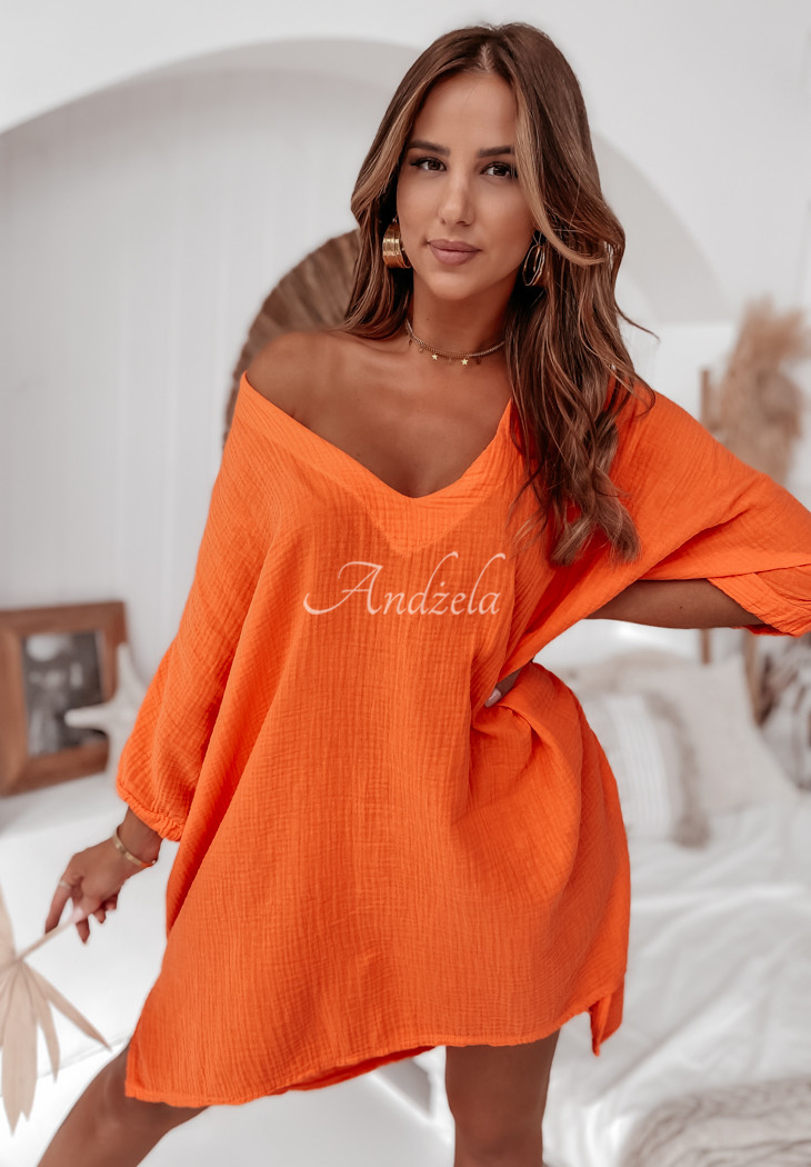 Muślinowa tunika o asymetrycznym kroju to propozycja, która koniecznie powinna znaleźć się w każdej garderobie. Model posiada głęboko wycięty dekolt, który sprawia, że całość prezentuje się niezwykle kobieco. Bluzka będzie fantastycznym wyborem przy tworzeniu codziennych stylizacji, które bez wątpienia będą prezentować się świetnie, ale także zapewnią Ci wygodę.