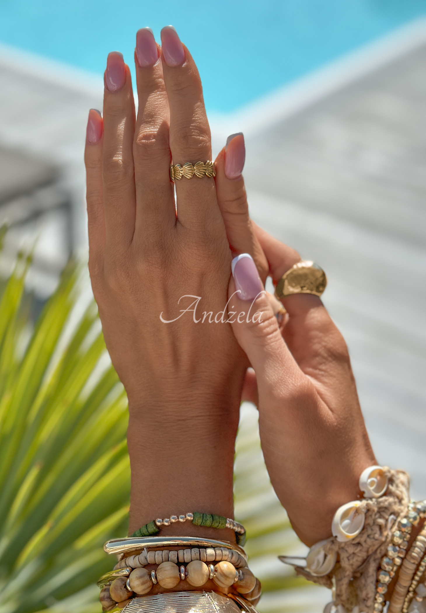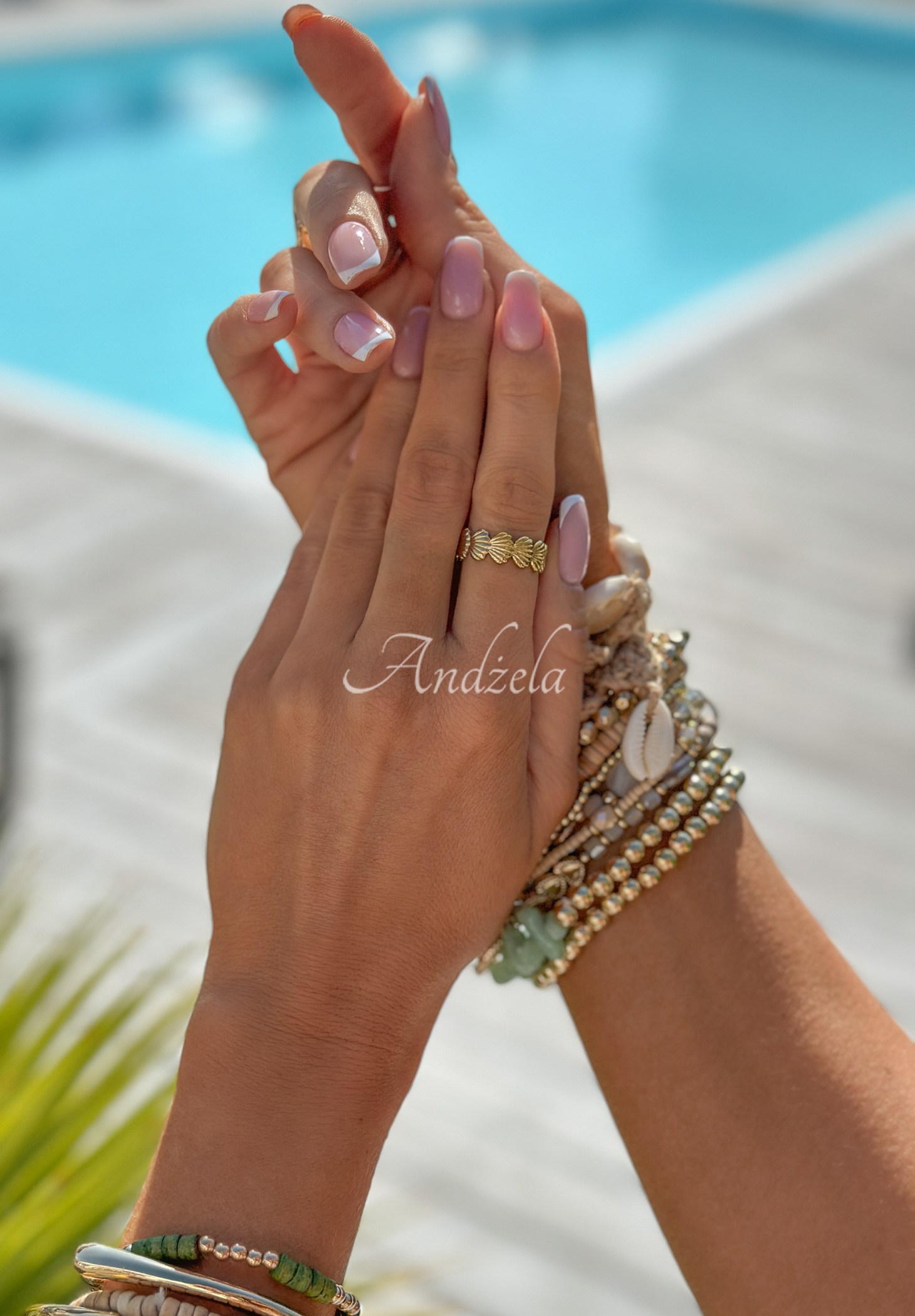 Pierścionek w subtelnej odsłonie to świetne dopełnienie stylizacji w różnym wydaniu. Model o złotym wykończeniu, nieregulowany, po całości zdobiony żłobieniem w kształcie muszelek.* złote wykończenie* zdobiony muszelkami* nieregulowany