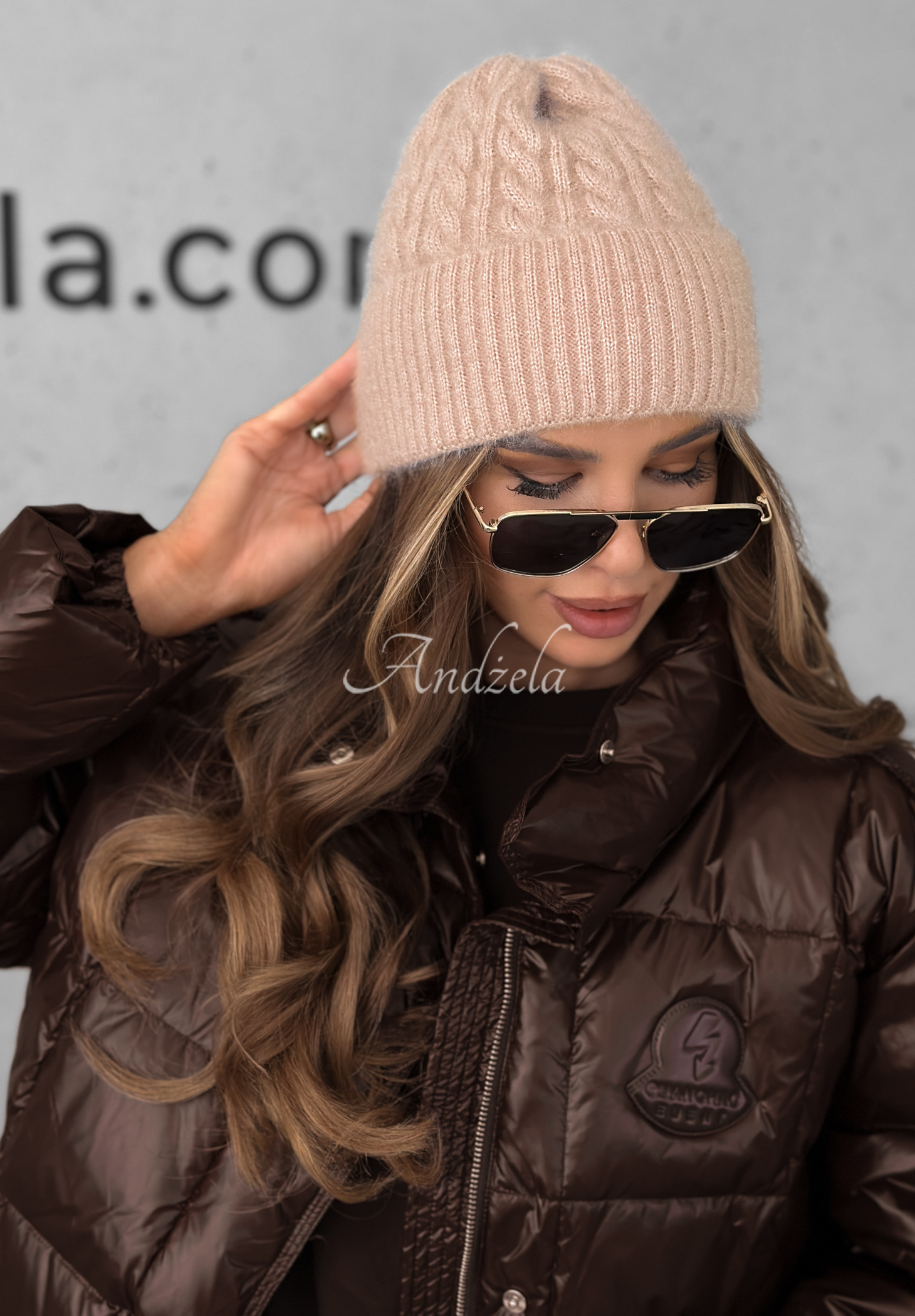 Czapka wykonana z przyjemnego w dotyku materiału. To minimalistyczna propozycja z subtelnym, srebrnym detalem z przodu, a także podwinięciem w dolnej części.* materiał elastyczny* srebrny detal z przodu * podwinięta na dole* nieocieplana