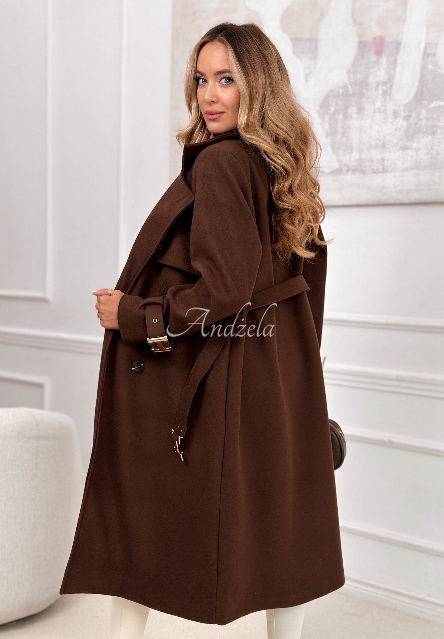 Changing Of Seasons chocolate brown long double-breasted coat with belt