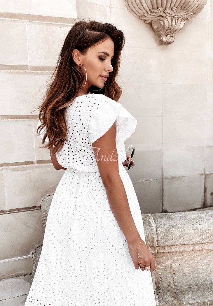 The boho style maxi length dress is a MUST HAVE in any closet! The deep-cut overlap neckline makes it feminine, and thanks to the elastic waistband and the attached belt, it will perfectly fit the figure and emphasize it. Thanks to the openwork material, the whole thing is lightweight. This model is a fantastic choice for everyday styling that will look great!